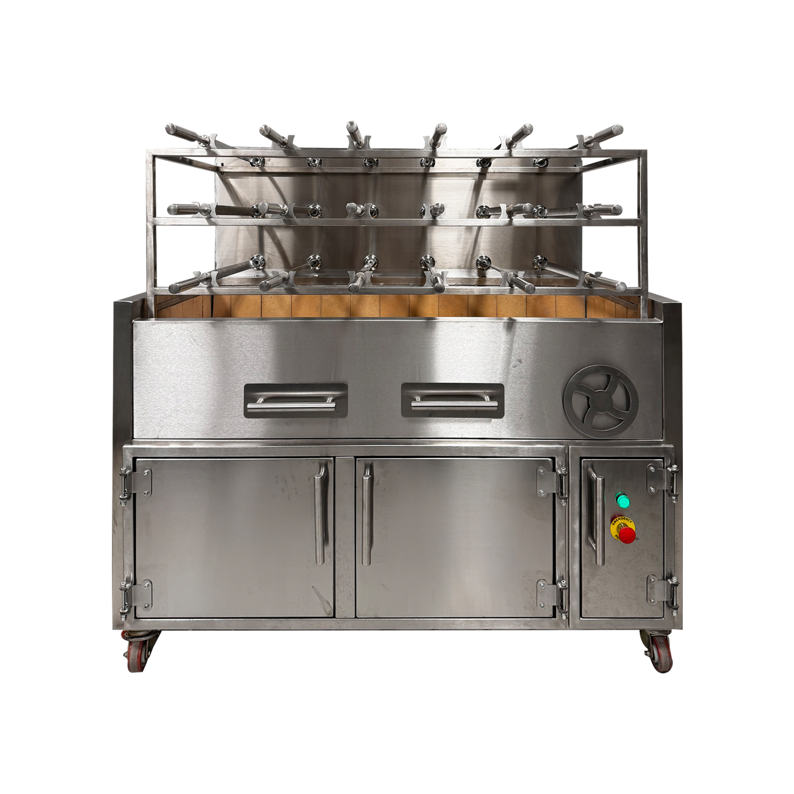 • 5-row, 3-tier automatic skewer rotisserie