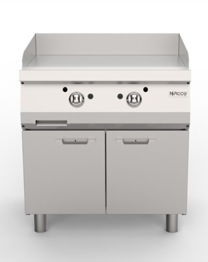 • Pişirme yüzeyinin altında konumlandırılan atık yağ haznesi, oluşan yağ ve partikülleri verimli şekilde toplayarak temiz bir çalışma ortamı sağlar. Önden erişilebilir yapısı, temizlik ve bakım sürecini hızlandırır. Her brülörün üzerinde yer alan dayanıklı döküm alev tutucular, ağır çalışma koşullarında dahi kararlı ve güvenilir performans sergiler.