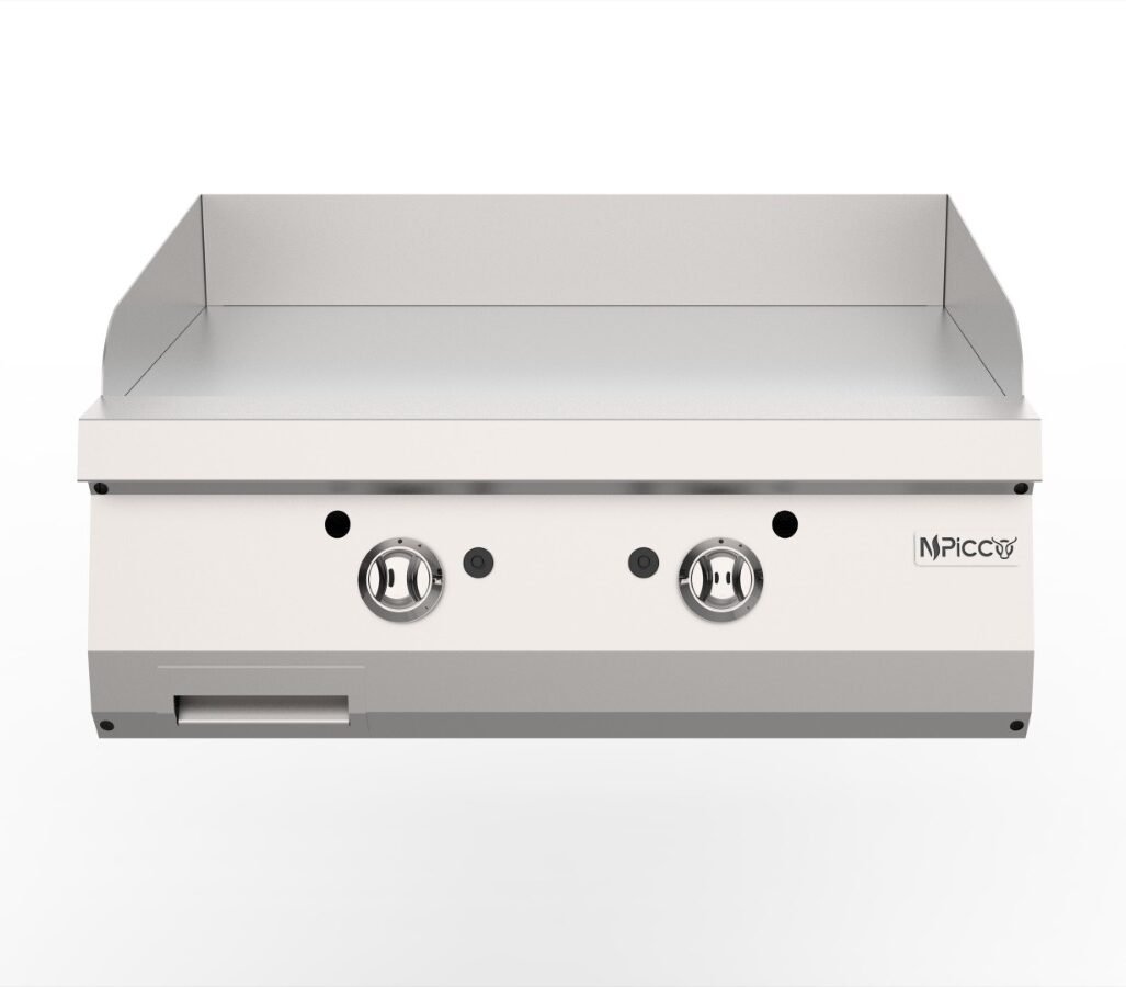 • 15 mm kalınlığındaki satine çelik yüzey, yoğun profesyonel kullanımda yüksek ısı verimi ve yüzey dayanımı sağlayarak hijyen ve yüzey stabilitesini sürekli korur.